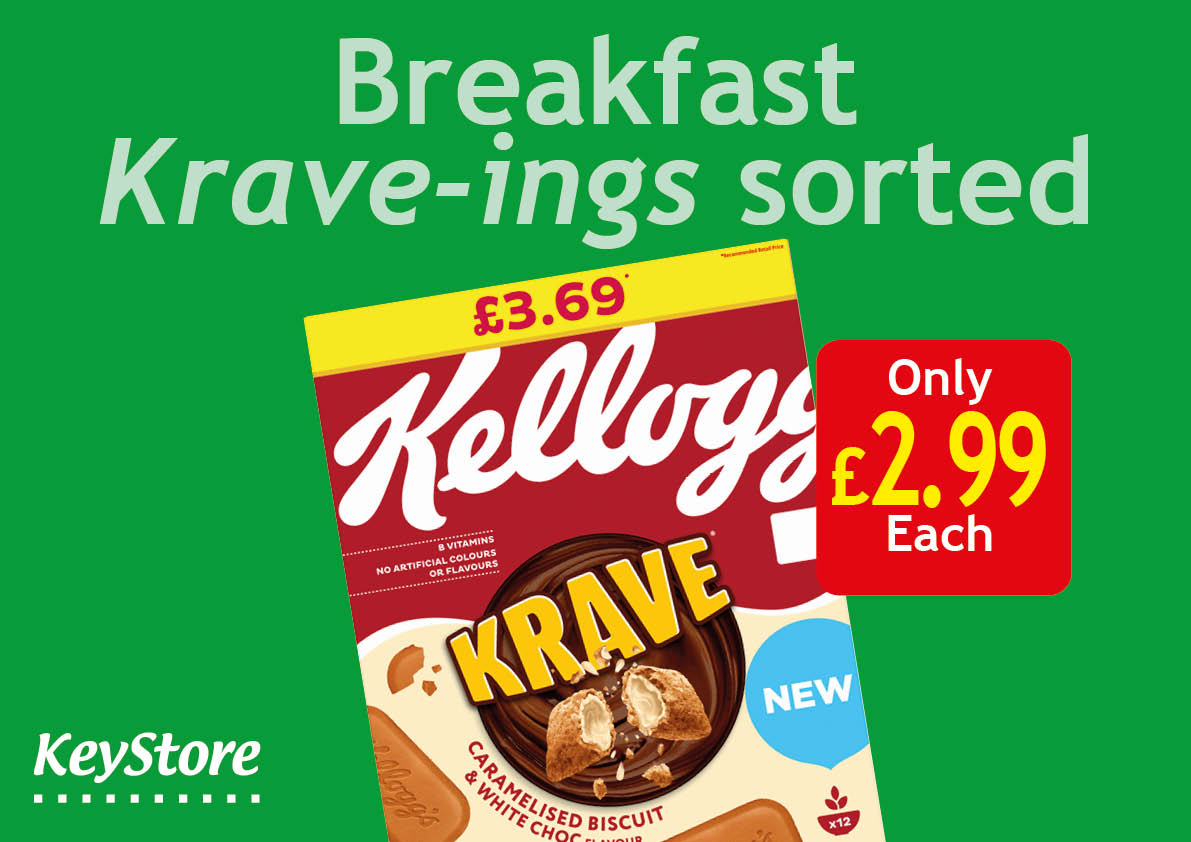 Kellogg’s Cereal, Krave Caramelised Biscuit / Frosties / Crunchy Nut / Coco Pops Chocos, 375g-470g, Price Marked £3.49/£3.69