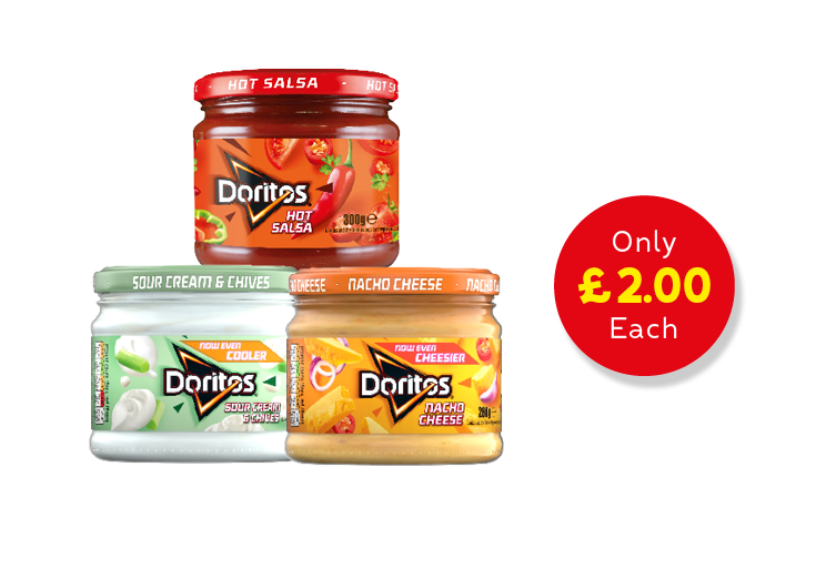 Doritos Sharing Dips, 280g/300g, Nacho Cheese / Hot Salsa / Mild Salsa / Sour Cream & Chive