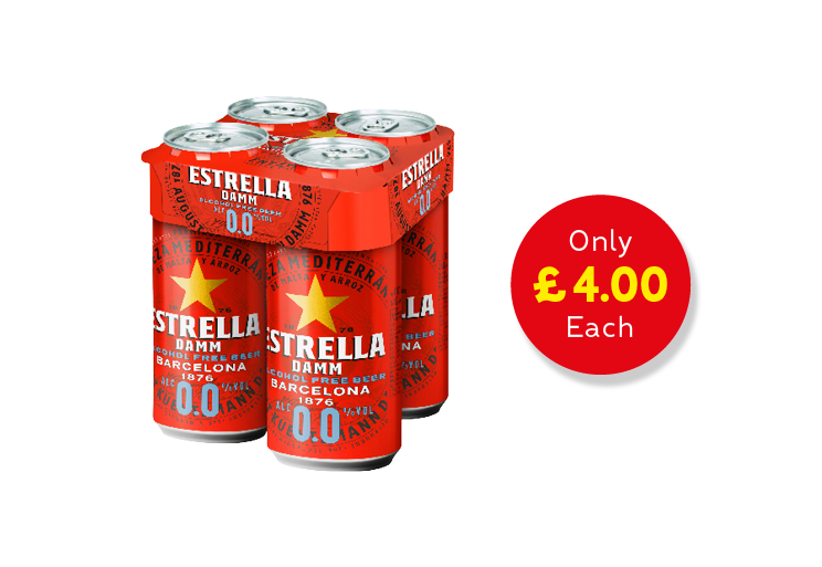 Estrella Damm 0.0% Cans, 4 Pack, 4 x 440ml
