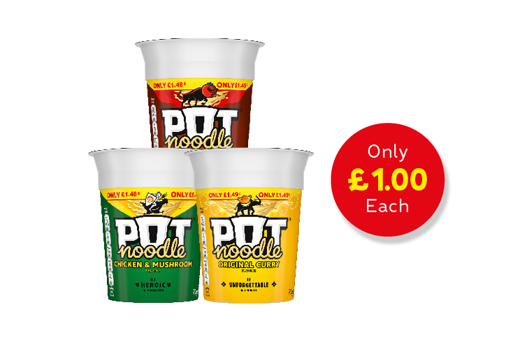 Pot Noodle, 90g, V.A.S, PM £1.49